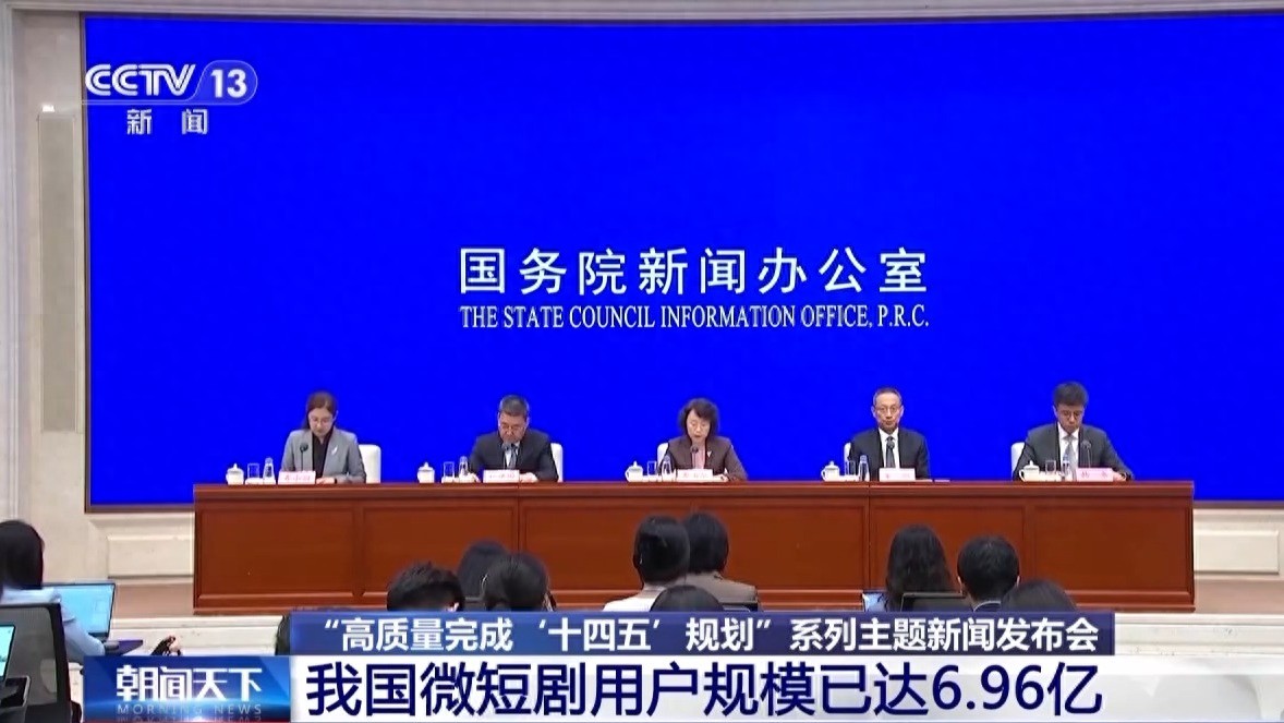 国务院新闻办公室昨天(9月25日)举行“高质量完成‘十四五’规划”系列主题新闻发布会。据广电总局介绍,“十四五”期间,微短剧成为新大众文艺的重要业态,用户规模和市场规模都取得快速发展。