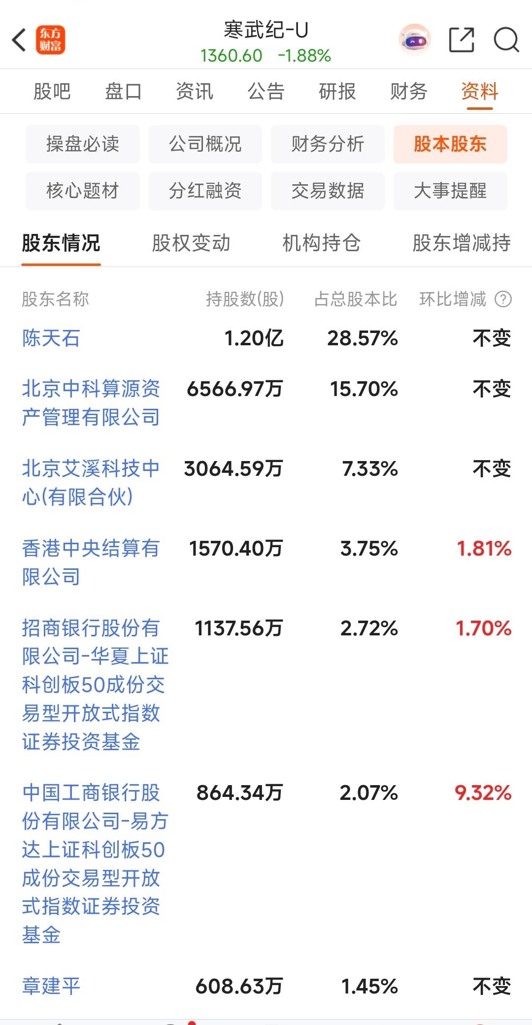 查阅寒武纪的十大股东,早在2024年四季度,超级牛散“章盟主”就已然在列。