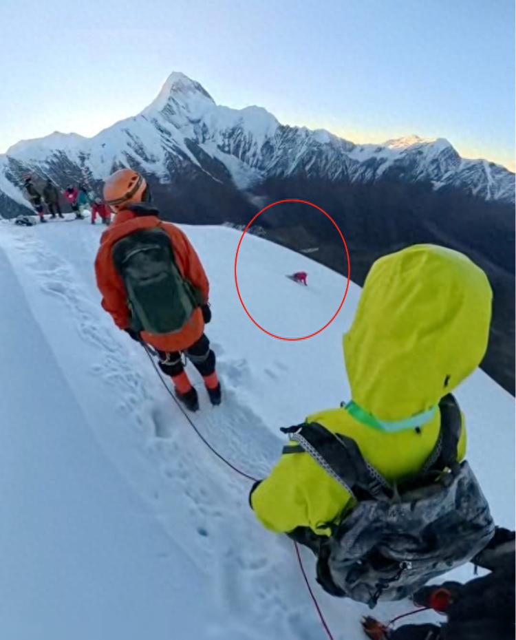 “滑坠下来直接落到碎石里面了。差不多(滑坠)一两百米,已经滑出有雪的地方了。(他)滑下去后,向导和其他人马上下去找到了他。就在C1营地的上面一点点,营地都看得到。尸体还在5300多米的地方。我都给村民说了,出于人道主义,尽量不收钱(把遗体)拉下来。”对于事发原因,这位工作人员称,“(初查)系他被冰爪绊了,他很多动作都违规了,冰爪放了,绳子解开了,如果冰爪不放,绳子不解,可能不会遇难。”