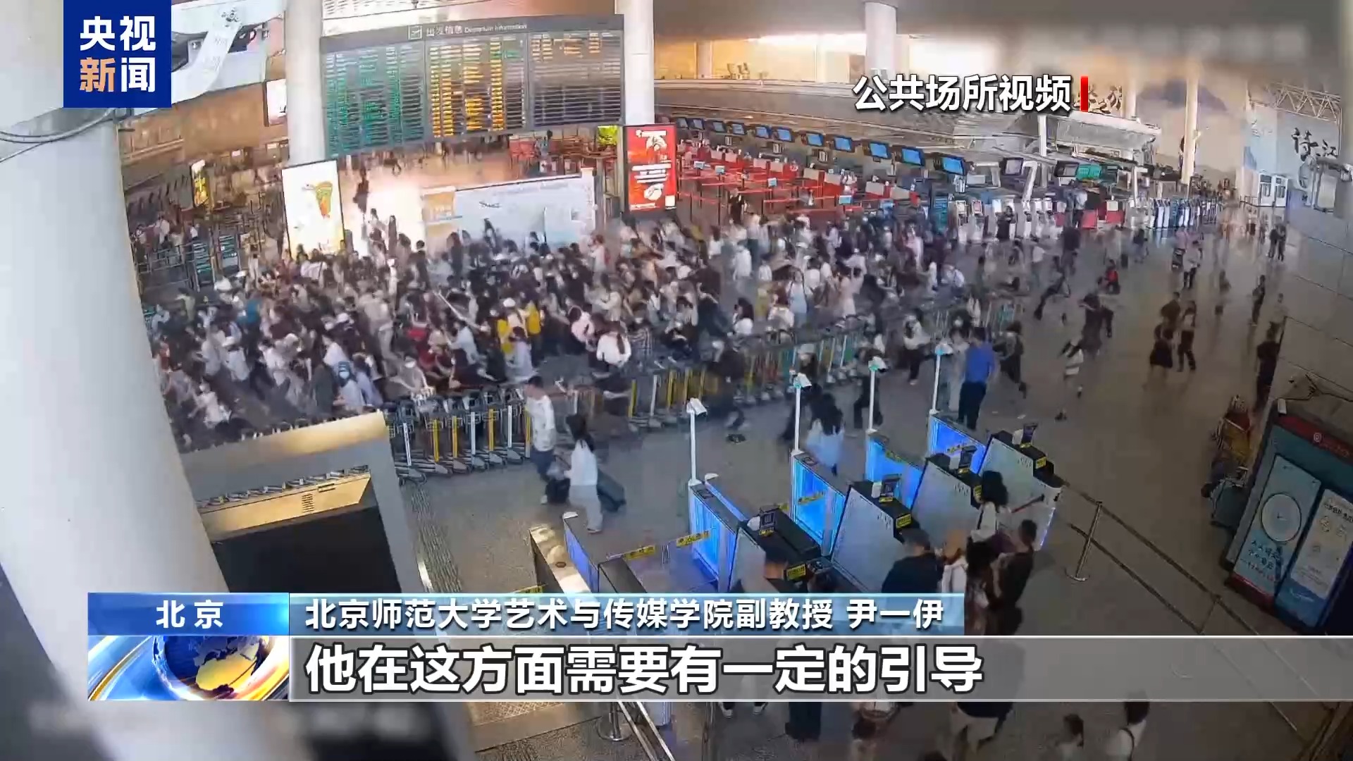 浙江省公安厅机场公安局航站楼派出所民警 洪泽楠:针对此类行为,我们提醒大家,理性文明追星,大家在现场都要配合工作人员的指引,建议粉丝和艺人在公开正确的场合见面。如果出现围堵、强行闯关、追逐艺人车辆等行为,不仅严重干扰他人出行和机场的管理秩序,更极易引发踩踏等严重后果,对于此类违法行为公安机关都将依法追究责任。