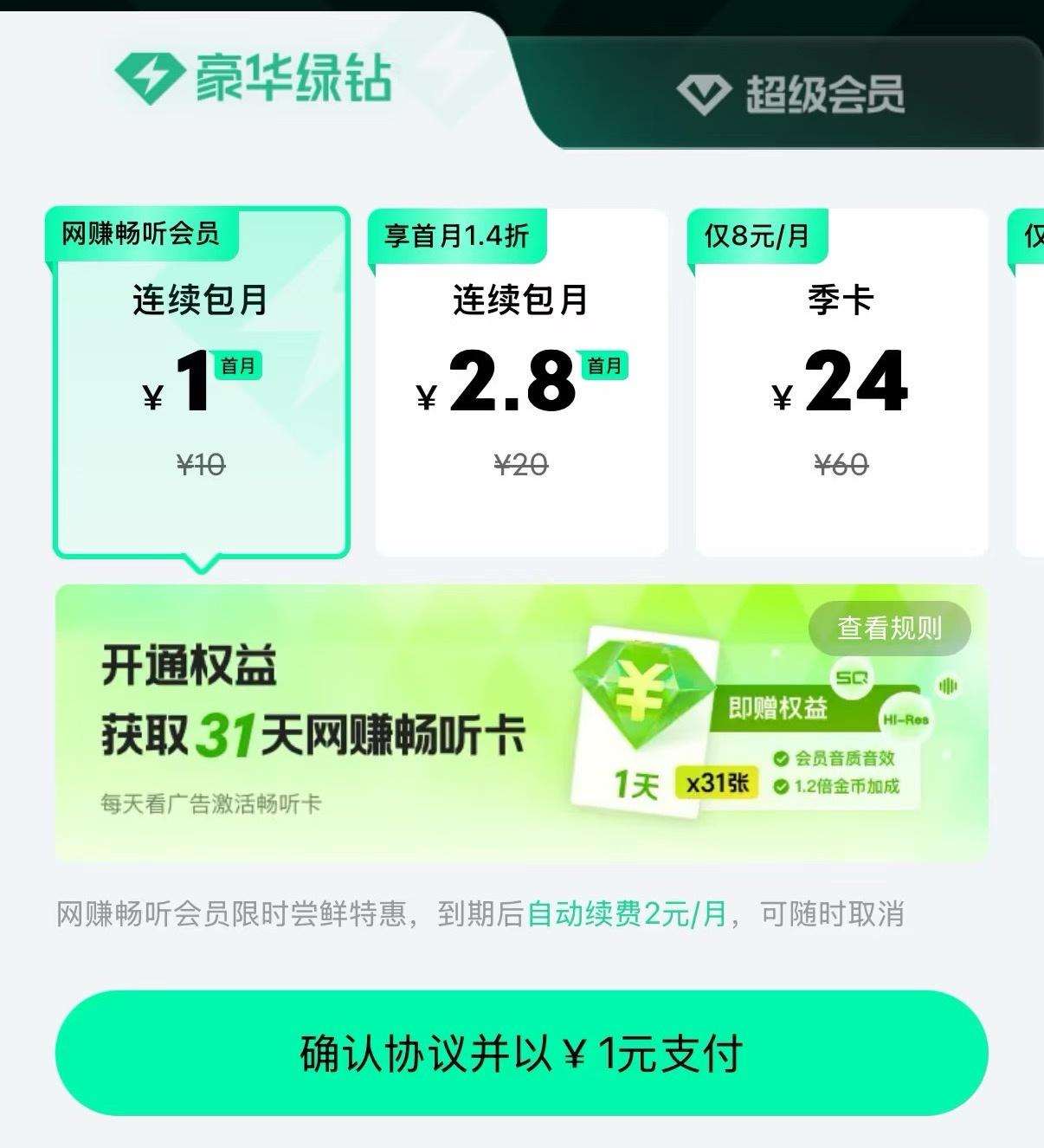 目前,QQ音乐豪华绿钻会员价格为18元一个月;新用户连续包月价格为首月价格为10元,续费价格为20元/月。