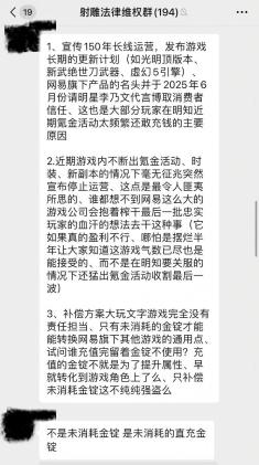 对于网易游戏给出的补偿方案,也有用户表示,目前,只有游戏中未消耗的“直充金锭”才能按等值点数形式返还至绑定账号,用于网易旗下其他游戏,但未提供直接现金退款。而对于已经消耗的金锭和累计充值金额,网易目前没有任何补偿计划。