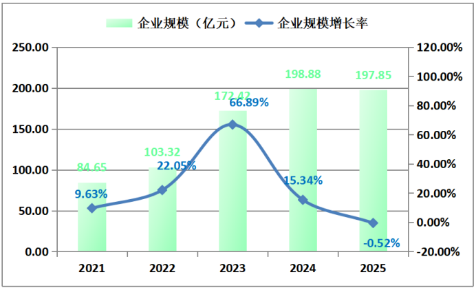 ▲图2 2021-2025年“500强”企业平均规模(亿元)