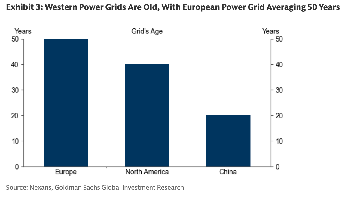 高盛分析师Lina Thomas和Daan Struyven在报告中指出:“随着人工智能崛起、地缘政治紧张局势加剧以及向混合战争的转变,对电网(能源供应链中的脆弱环节)的投资需求及相关金属需求增长正变得日益迫切。”