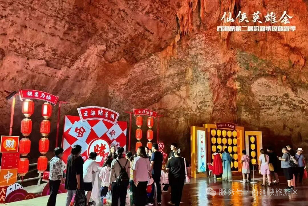 “据专家考证,这个溶洞形成于距今至少已有5亿多年前的寒武纪时代,石瀑、石钟乳、石笋、石柱、石幔、流石、石盾、石花等有近百种溶洞奇观。”据百洞峡旅游区方面介绍,景区已逐步发展成为集康养、休闲、避暑、观光、研学为一体的生态文化旅游目的地。