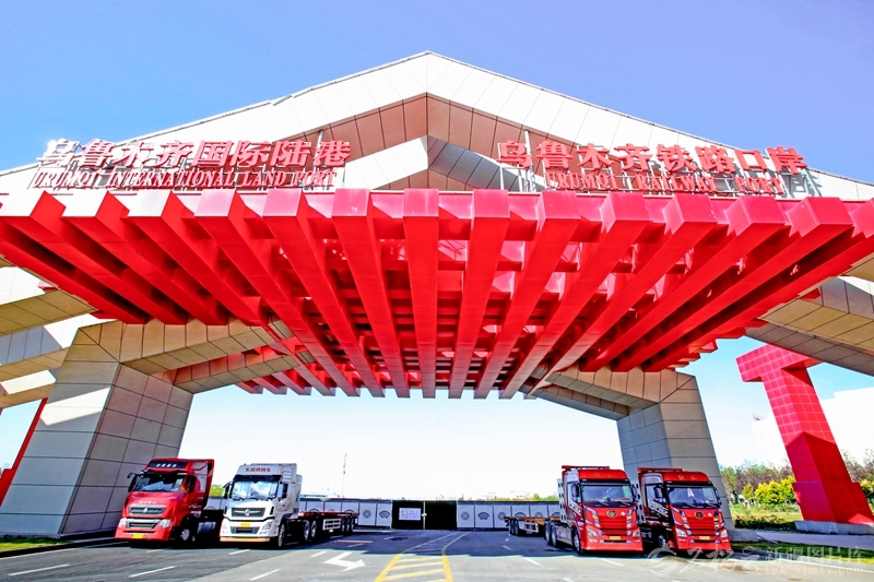 建陆港,聚产业;织路网,兴民航。龙门擎天,列阵横空吊集装箱;铁龙穿漠,呼啸不绝载万里商。中欧班列,五载均过万列,驰骋亚欧;口岸货流如川,南来北往;能源西进东输,国脉泱泱。贸易翻倍,连破千亿之关,跃升势不可挡。看绿洲稻浪翻涌,赞军垦热血铸疆。铁骨铮铮,铺就丝路基石;新景灿灿,辉映时代勋章。