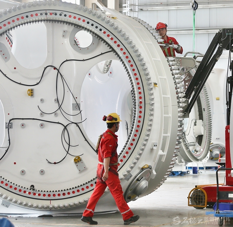 位于乌鲁木齐市达坂城区的金风科技股份有限公司达坂城零碳数字化工厂园区内,工人在叶轮生产线上作业(2024年8月26日摄)。 石榴云/新疆日报记者李瑞摄