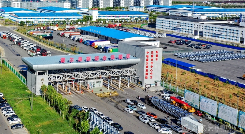 车辆在霍尔果斯综合保税区排队办理通关手续(2023年8月29日摄)。 石榴云/新疆日报记者蔡增乐摄