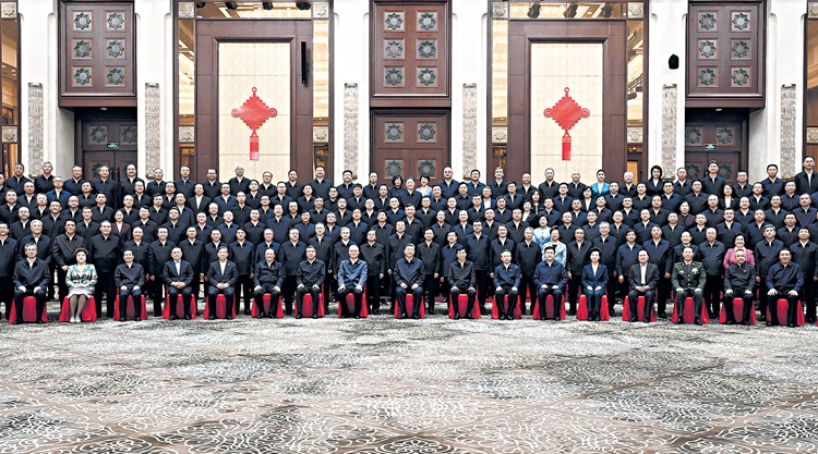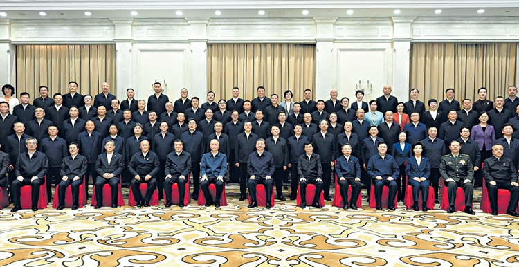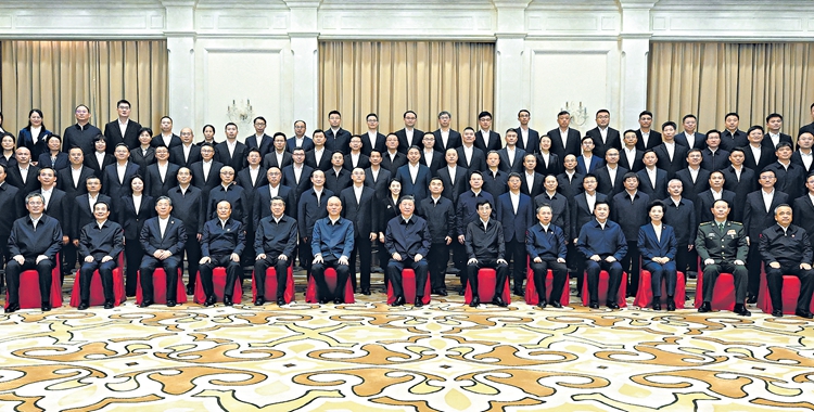 9月23日下午,中共中央总书记、国家主席、中央军委主席习近平在乌鲁木齐亲切接见新疆生产建设兵团领导班子成员及有关方面负责同志,并同大家合影留念。□新华社记者申宏摄