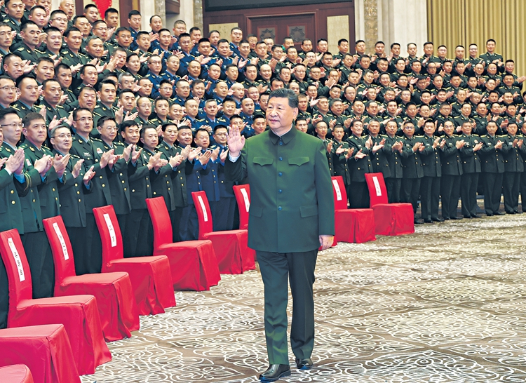 9月23日下午,中共中央总书记、国家主席、中央军委主席习近平在乌鲁木齐亲切接见驻新疆部队官兵代表,并同大家合影留念。□新华社记者李刚摄