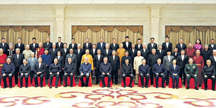 9月23日下午,中共中央总书记、国家主席、中央军委主席习近平在乌鲁木齐亲切接见新疆维吾尔自治区宗教界爱国人士和基层宗教工作干部代表,并同大家合影留念。□新华社记者丁林摄