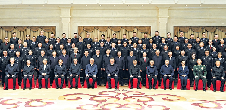 9月23日下午,中共中央总书记、国家主席、中央军委主席习近平在乌鲁木齐亲切接见新疆维吾尔自治区政法干警代表,并同大家合影留念。□新华社记者丁林摄