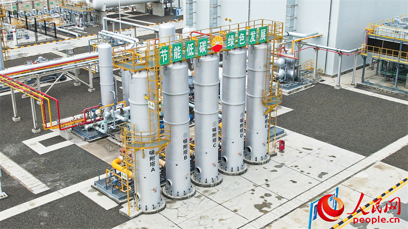 新疆油田采油二厂八区530井区CO2混相驱先导试验站内,“捕碳者”将二氧化碳捕集液化,输送至油区,注入油藏,大幅提高原油采收率,同时将二氧化碳封存于地下实现减排。
