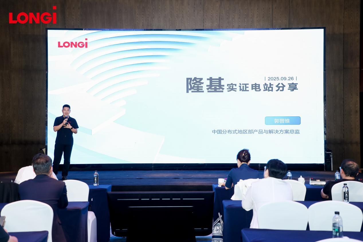 图说:隆基中国分布式地区部产品与解决方案总监郭晋维作《隆基实证电站分享》的报告