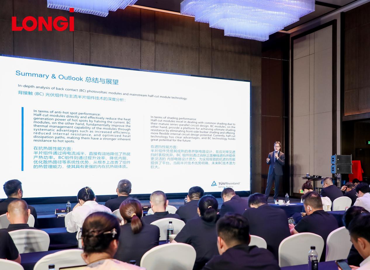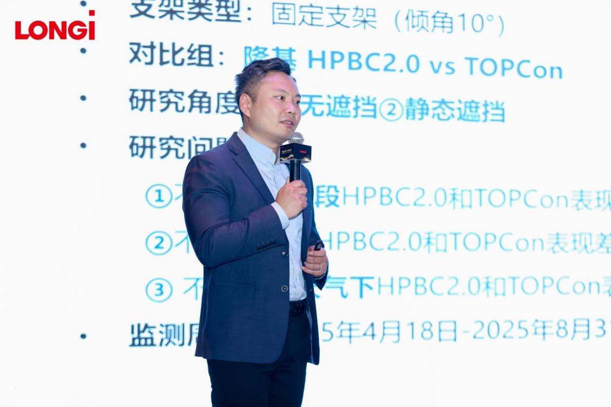 图说:北京鉴衡认证中心有限公司太阳能事业部技术总监朱晨分享《HPBC 2.0组件多场景多维度发电特性实证报告》