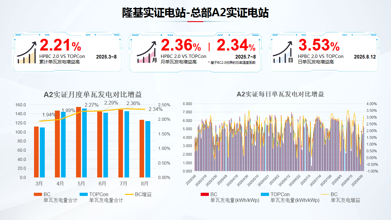 隆基泰州基地的实证电站通过一年的实证数据显示,“三防”组件比TOPCon累计单瓦发电增益高1.5%,单日最大单瓦发电增益高2.73%。