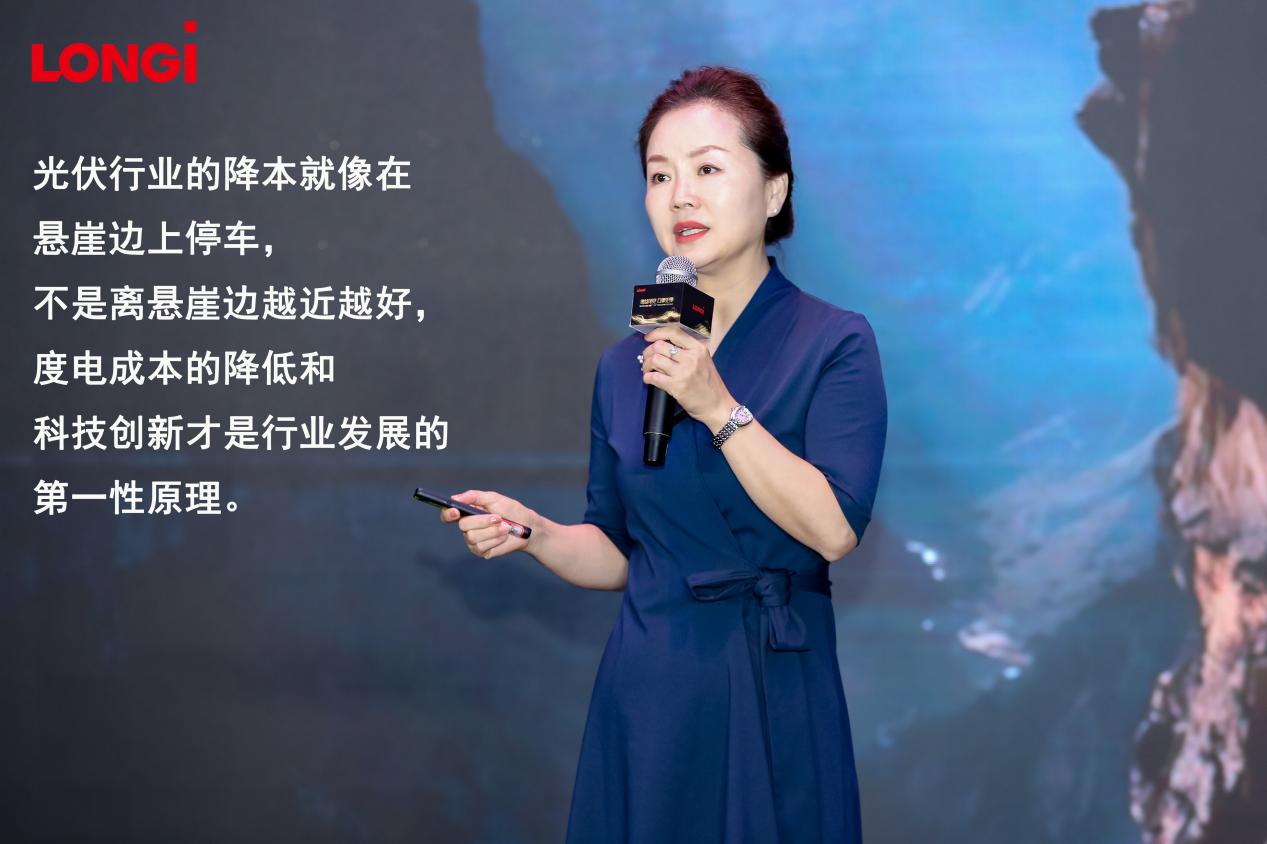 隆基分布式中国区总裁牛燕燕在致辞中讲道:“光伏行业的降本就像在悬崖边上停车,不是离悬崖边越近越好,度电成本的降低和科技创新才是光伏行业发展的第一性原理。”