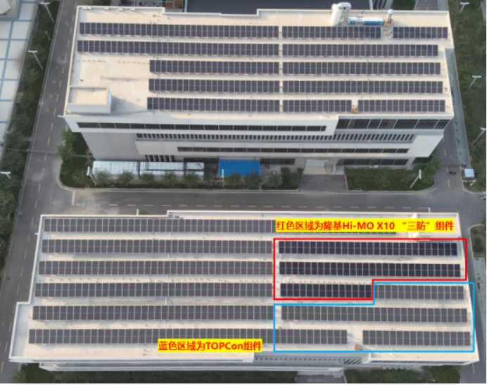 国家太阳能光伏产品质量检验检测中心(CPVT)针对隆基“三防”组件和TOPCon常规组件,就组件的防热斑起火性能、防遮挡性能和防积灰性能,进行了严苛的实验室测试和户外实证测试,结果显示隆基Hi-MO X10 “三防”组件对比传统的TOPCon组件展现出了巨大的领先优势。