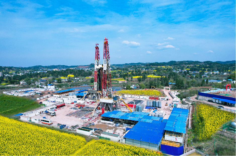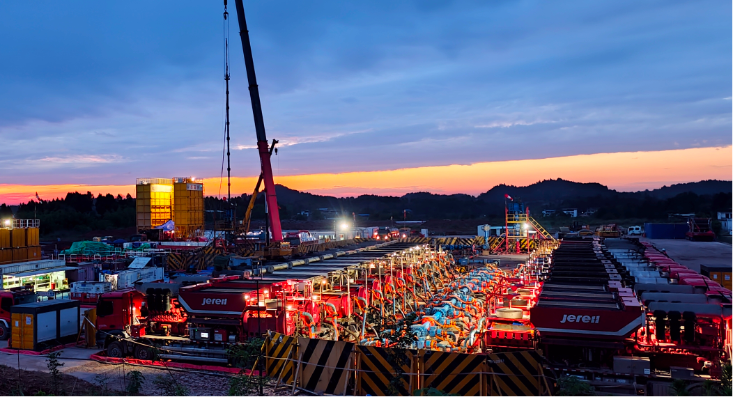 资阳地区地质工程条件复杂,难钻地层厚、埋藏深、压力高、温度高,钻完井工程挑战极大。中国石化攻关团队在钻井工程方面,通过强化地质-工程一体化,集成应用耐高温、精细控压、高效封堵等技术,实现安全优快成井。在完井工程方面,首次创新采用国内最大尺度携砂压裂一体化装置,创新形成超深层页岩气压裂技术,配套超高压完井体系和关键工艺,有效支撑了高产井培育。