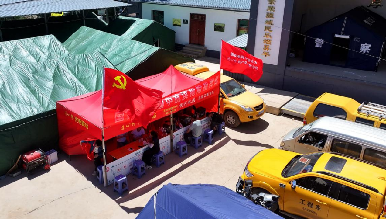 ▲国网兰州供电公司在榆中“8.7”山洪泥石流灾害现场设置“光明驿站”。