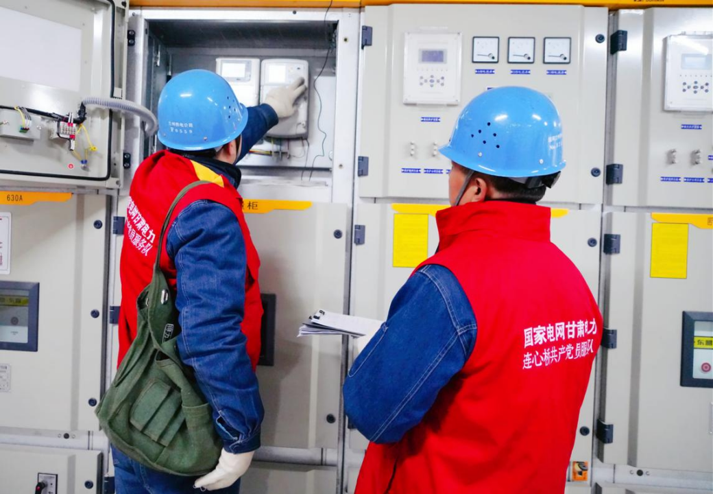 ▲国网兰州供电公司永靖县公司员工在变电站检查设备运行情况。