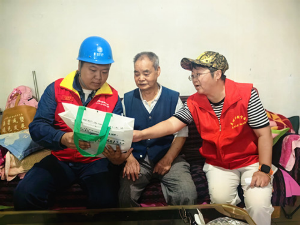 随着供电恢复,服务队队员分组开展入户走访,仔细检查线路和设备受损情况,耐心讲解安全用电知识,全力保障老百姓安全用电。