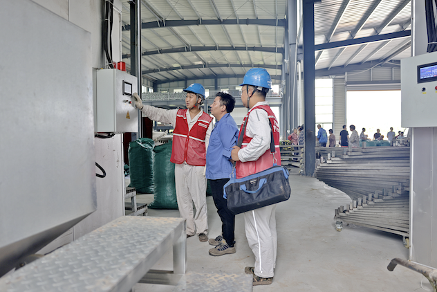 重庆大足供电公司员工在佛手基地加工(烘烤)车间帮助客户检查插座等设备。张冰/摄