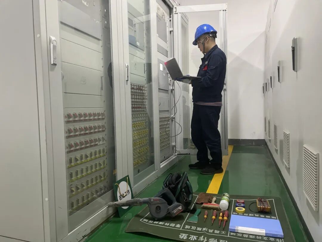 走进电子设备间,绿色的地板光可鉴人,墨绿色的标准化检修作业垫整齐铺开,各类工具、仪表在线内有序摆放,检修人员正专注操作着。