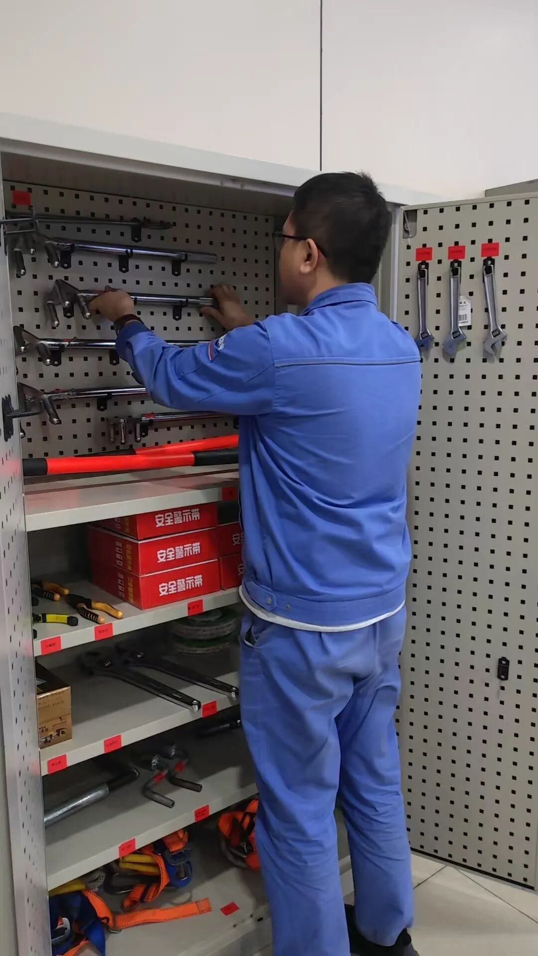 今年以来,运行部以运行标准化管理为抓手,从员工最常接触的“小事”入手,全力补齐安全生产基础短板。针对以往工器具存放分散、取用不便的问题,部门全面梳理日常巡检、应急处置所需装备,在集控室集中配齐配全100余件安全工器具——大到担架、正压呼吸器、防酸碱服,小到螺丝刀、管钳、听针,从保障人身安全的护目镜、安全带、绝缘鞋,到监测设备状态的测温枪、测振仪、气体检测仪、粉尘浓度检测仪,再到规范操作的验电器、执法记录仪、安全警示标牌等,各类工具分类摆放、标识清晰,既解决了“找工具难”的卡点,也为应急处置争取了宝贵时间。