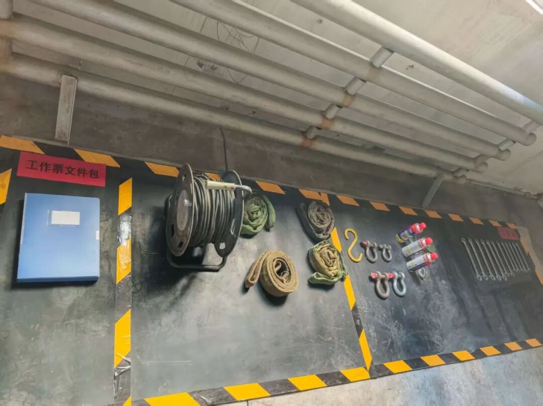 “我们要求‘三不落地’、‘三齐三不乱’。”现场一位负责人介绍道,“这样的细节管理,不仅避免了作业过程中的滑倒、绊倒风险,也减少了工器具损坏和设备污染。”