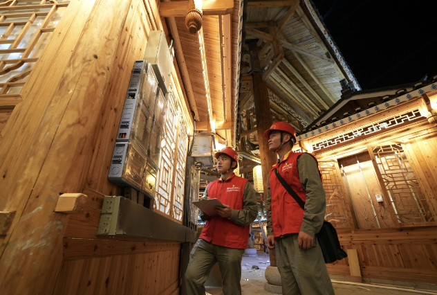国网湖南电力(东方红)共产党员服务队在怀化五溪非遗园巡视线路