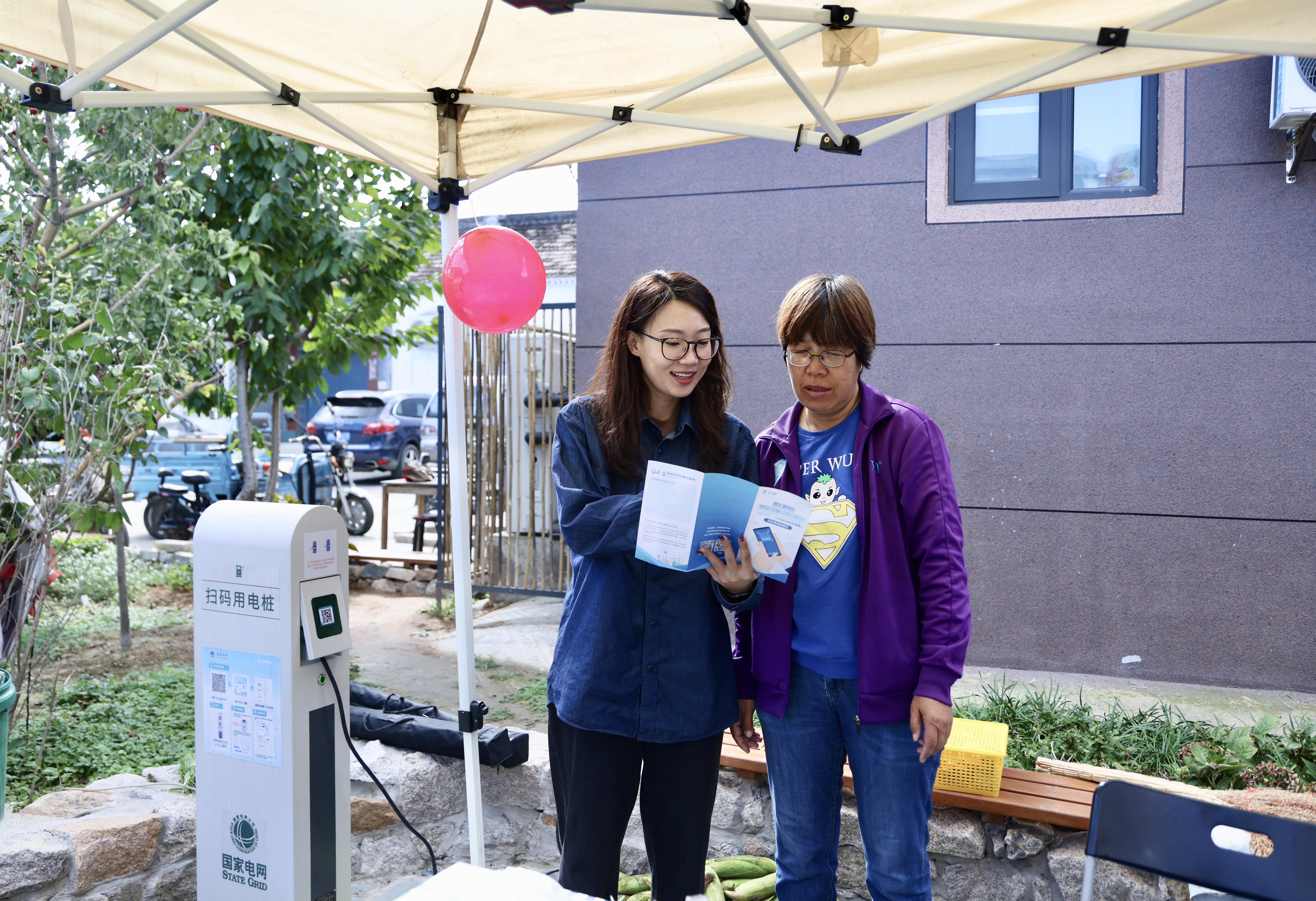 国家电网首都电力(平谷)共产党员服务队队员在靠山集大集宣传“扫码共享用电”服务。张强/摄