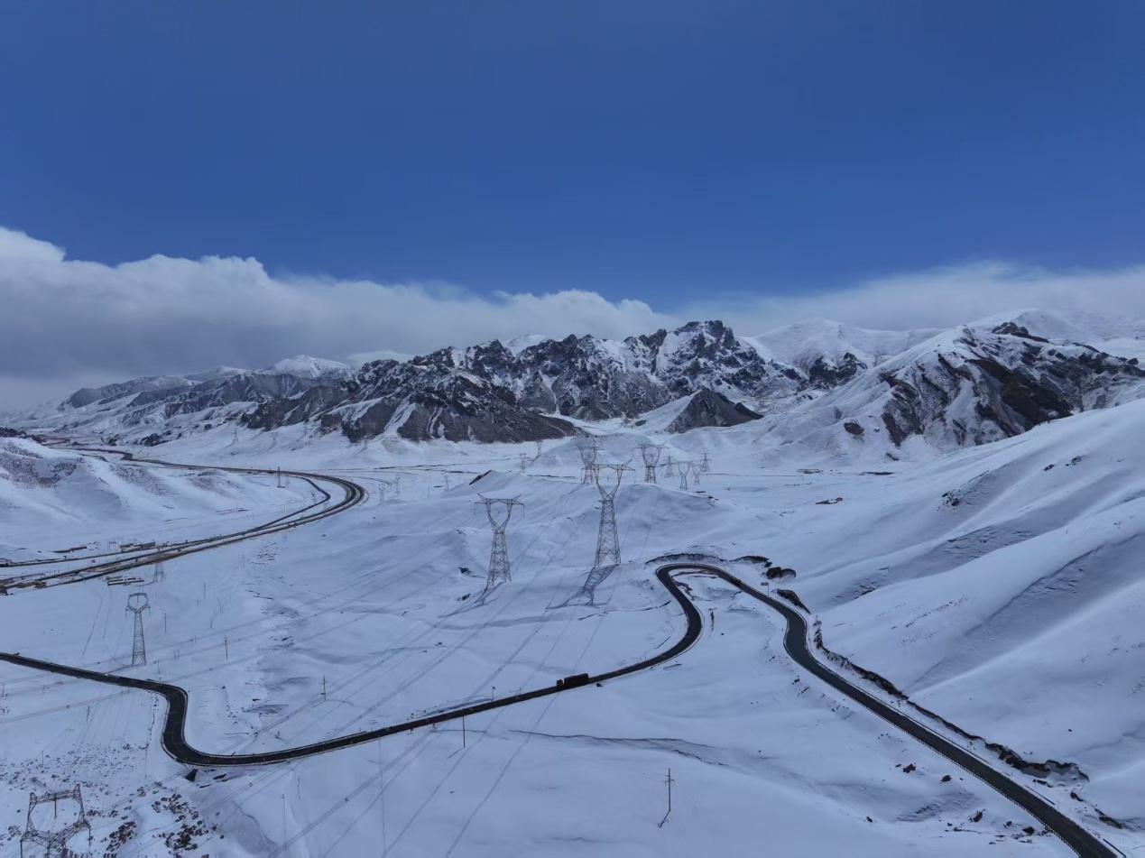 苏里35千伏输变电工程穿越祁连山深处。许小萍/摄