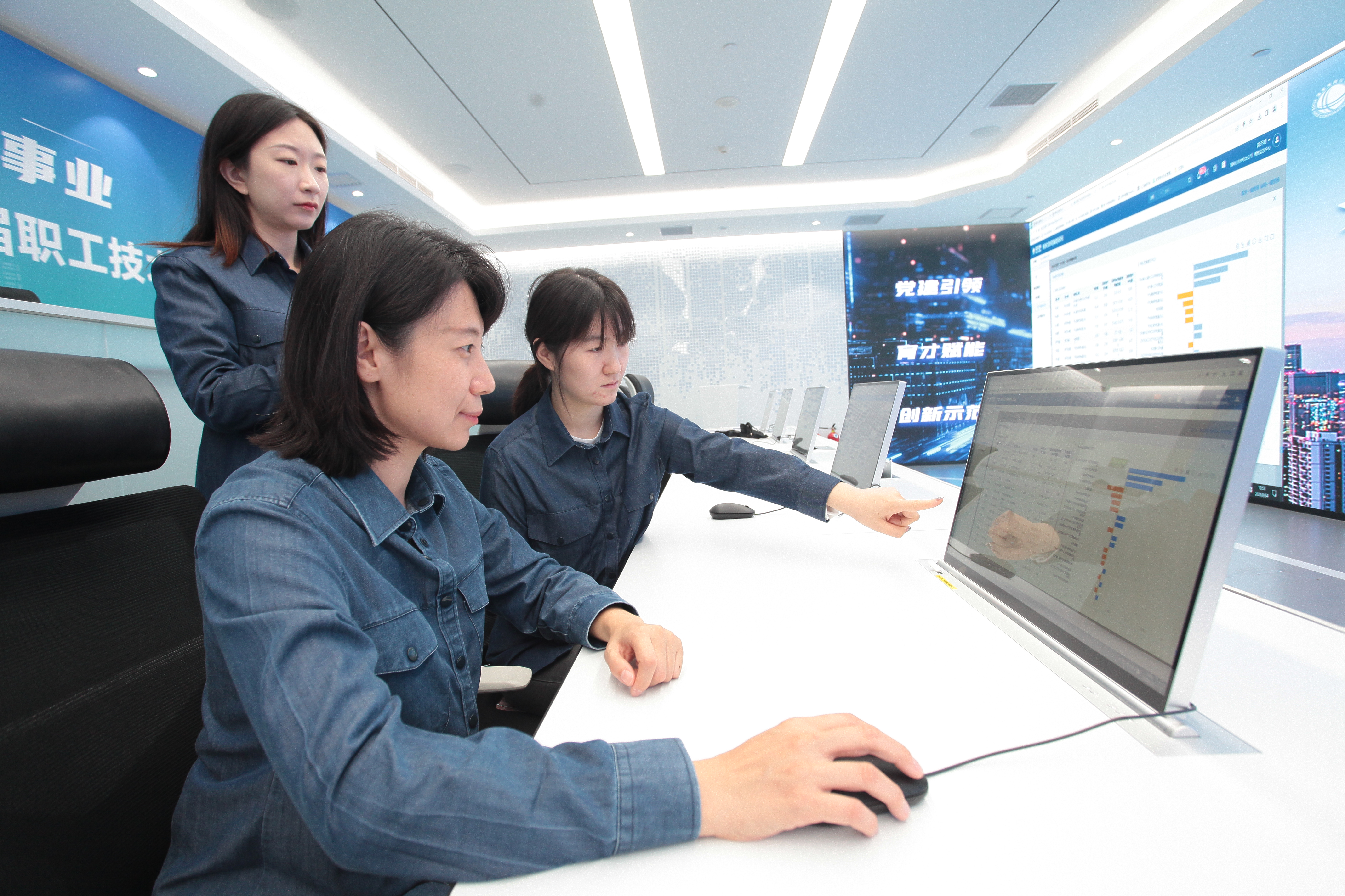 国网北京客服中心营销稽查人员对排查出的异常工单进行系统派发。王蕊/摄