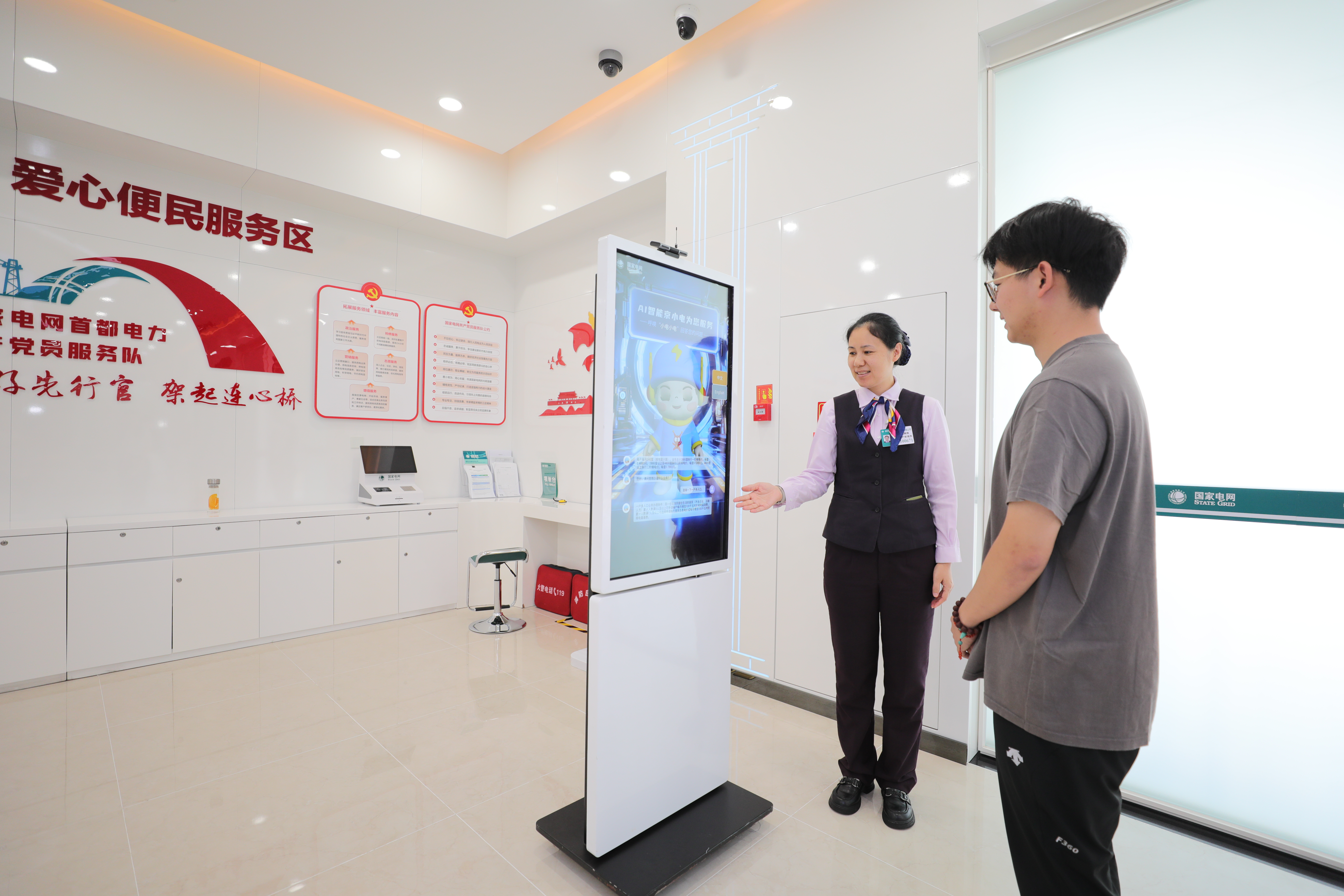 国网北京城区供电公司崇文营业厅人员应用智能辅助服务系统,为客户办理用电业务。单玉婧/摄