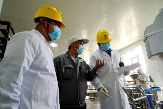 国家电网青海电力三江源(电靓夏都)共产党员服务队队员为青海一片绿食品有限公司进行安全检查。(沈仪摄)
