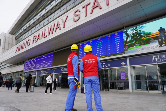 国家电网青海电力三江源(电靓夏都)共产党员服务队队员前往西宁市汽车站、火车站进行用电安全检查。(沈仪摄)