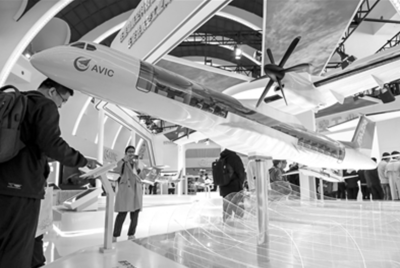 图为西安飞机工业(集团)有限责任公司研制的新舟700飞机模型。