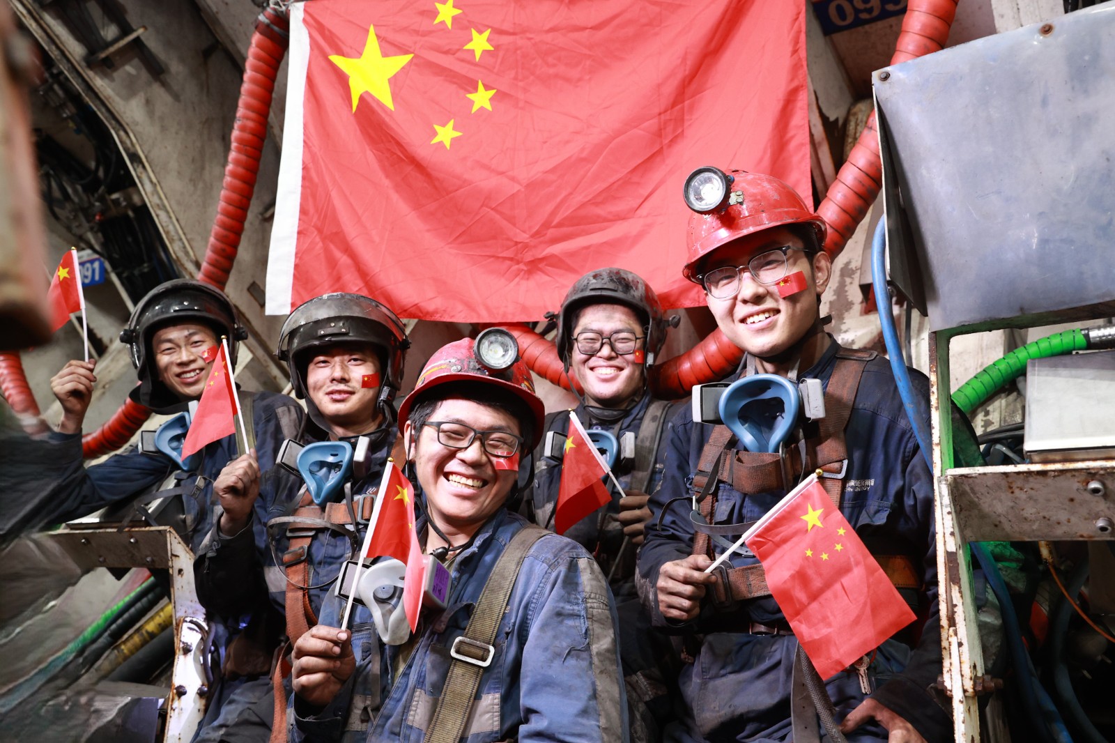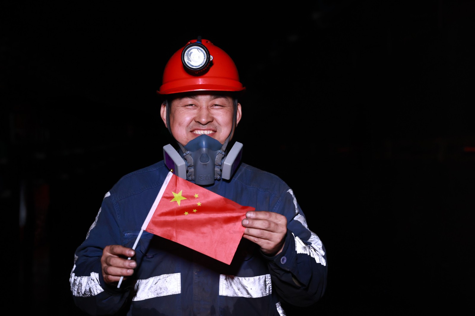 在神东煤炭井巷深处矿工们同国旗合影,立足井下生产一线,以坚守岗位保障能源稳定供应的担当,向祖国母亲深情告白,祝愿伟大祖国生日快乐、繁荣昌盛!作者:吴光丽 摄