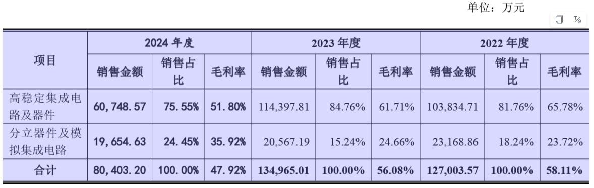高稳定集成电路及器件业务则是 “压舱石”:2022-2024年在产品与方案业务中的营收占比均超 75%,2023 年毛利率 42%,贡献毛利 7.06 亿元,占公司总毛利超 100%(抵消制造业务亏损后),其经营状况直接决定燕东微盈利水平。