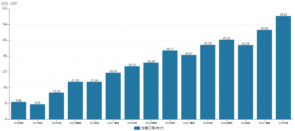 半导体制造需持续巨额投资,燕东微上市后在建工程快速增长:从2020年不足10亿元,增至 2025 年上半年的 58.82 亿元,超过同期固定资产(55.16 亿元),成为 A 股唯一在建工程超固定资产的晶圆制造企业。