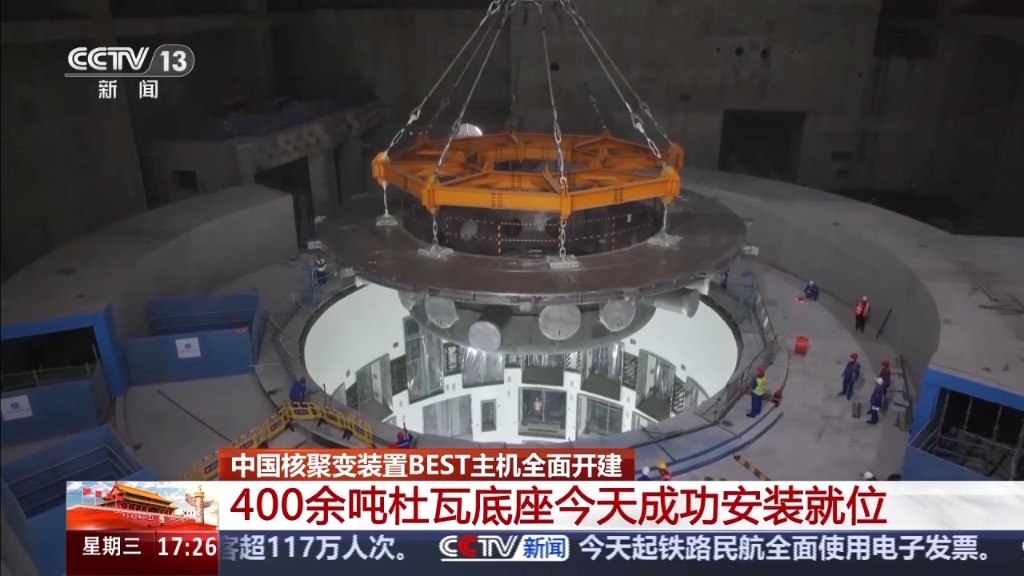 10月1日,位于安徽合肥的紧凑型聚变能实验装置BEST项目建设取得关键突破。BEST装置主机关键部件——杜瓦底座研制成功并顺利完成交付,成功精准落位安装在BEST装置主机大厅内,标志着项目主体工程建设步入新阶段。
