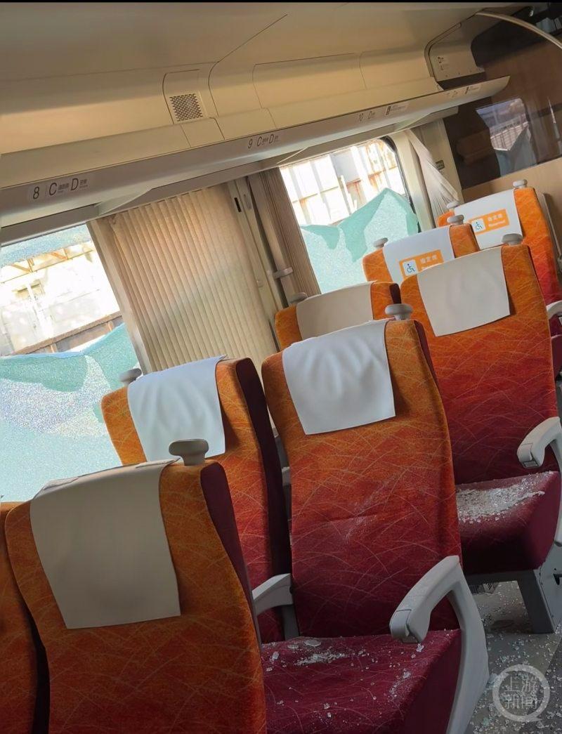 特快列车和卡车发生碰撞后碎掉的车窗玻璃。受访者供图