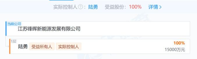 而江苏锋晖由陆勇100%持股。
