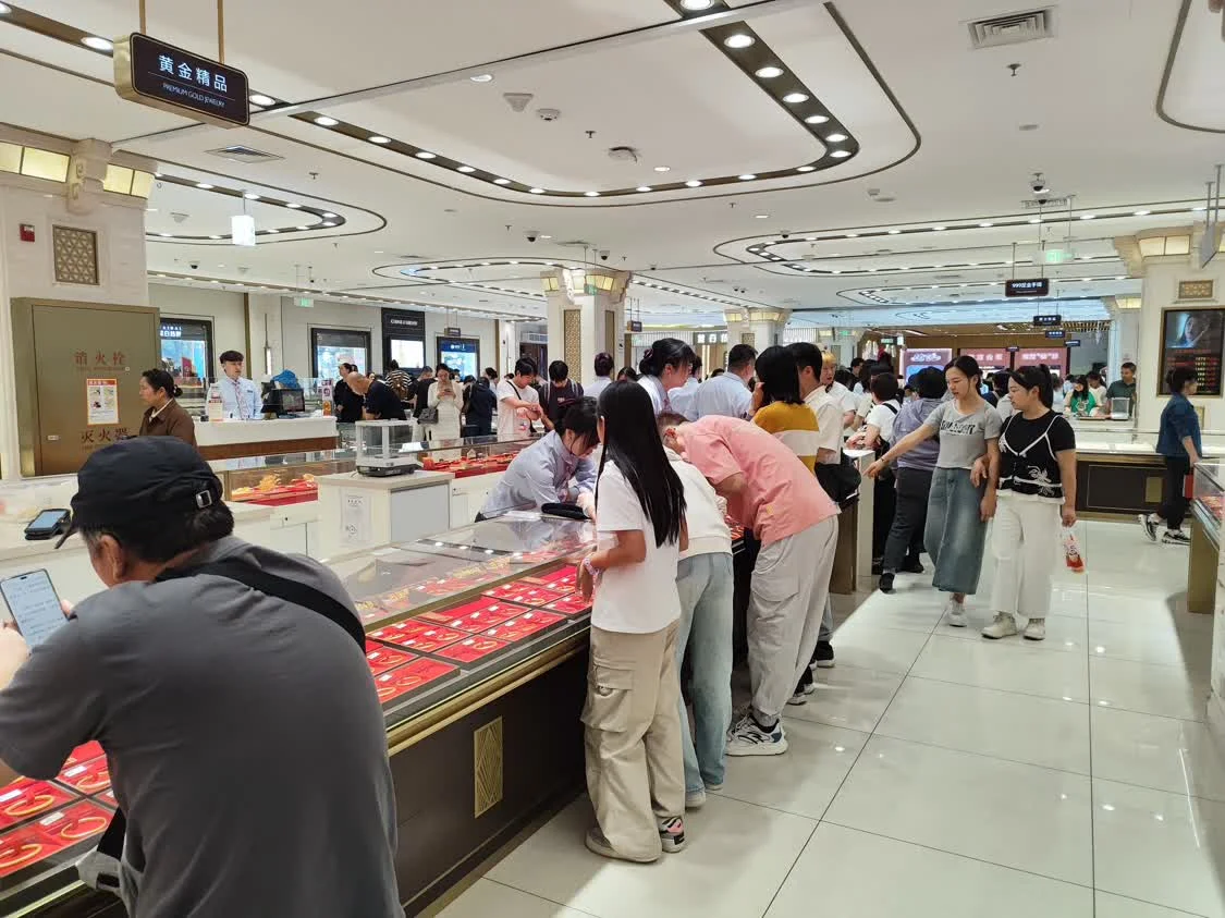 在假期效应和商家促销的共同作用下,黄金珠宝消费品也迎来了小阳春,北京菜百股份(605599.SH)总店人山人海的景象再度出现。