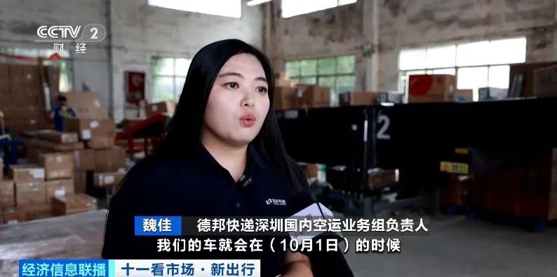 德邦快递深圳国内空运业务组负责人 魏佳:我们在整个过程中都是有一对一的客服跟进,比如,客户是10月1日到,我们的车就会在10月1日的时候送到他的指定地点。