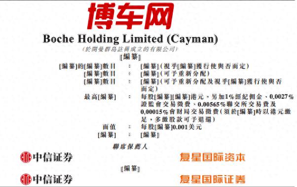 9月30日,港交所显示,中国最大事故车拍卖平台——Boche Holding Limited(Cayman)(以下简称“博车网”或”公司“)时隔 7 个月再次递交港股招股书。中信证券和复星国际资本担任联席保荐人。此前,公司于2025年2月21日首次递表港交所,但于8月21日满6个月已失效。