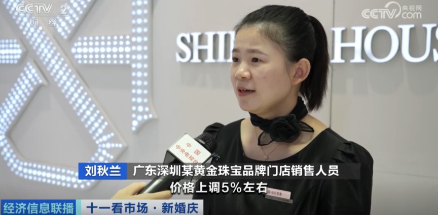 广东深圳某黄金珠宝品牌门店销售人员刘秋兰:国庆期间,我们针对一口价的产品,价格上调5%左右。