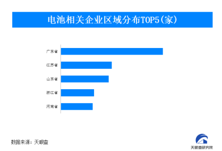 天眼查专业版数据显示,截至目前,我国现存电池相关的企业有122.6万余家,从地域分布上看,广东省、江苏省、山东省电池相关企业数量位居前列,分别拥有25.2万余家、12.6万余家、11.9万余家;从成立时间来看,超六成的相关企业成立于1-5年之间,成立于1年内的相关企业占比35.01%。