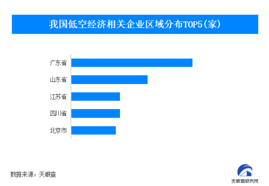 天眼查专业版数据显示,截至目前,我国现存低空经济相关的企业有9.3万余家,从地域分布上看,广东省、山东省、江苏省低空经济相关企业数量位居前列,分别拥有1.2万余家、7600余家、4900余家;从成立时间来看,超五成的相关企业成立于5年内,成立于1年内的相关企业占比24.95%。